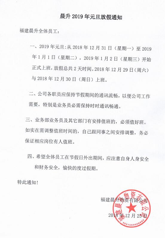 2019年元旦放假通知